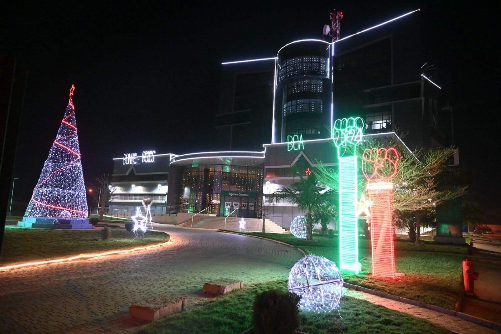 Pour ce projet, chaque détail a été minutieusement pensé, de la décoration lumineuse aux éléments de branding, afin de créer une atmosphère accueillante et festive. Mon objectif était de proposer un concept créatif qui se démarque, apportant une touche de magie aux lieux tout en renforçant l’identité de BOA-BF.